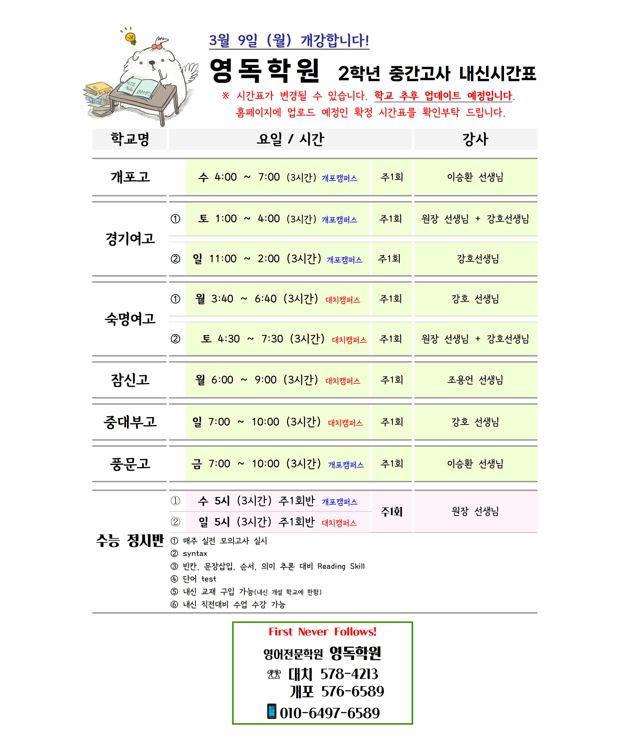 ¢Ã 2026³â °í2 Á¤±Ô¹Ý / Áß°£°í»ç ½Ã°£Ç¥ ¢Ã